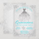 Invitaciones de Quinceañera de paisaje invernal de copo de nieve azul teal con vestido elegante en un hermoso fondo de diamantes y copos de nieve de paisaje invernal. Estas elegantes invitaciones de Quinceañera de paisaje invernal azul teal y gris plateado se personalizan fácilmente para su evento simplemente agregando sus datos.