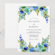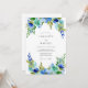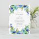 A refreshing palette of teal and azure watercolor florals is paired with vibrant emerald greenery. Delicate anemones and soft botanical elements are artistically arranged to create an airy and ethereal aesthetic. It is a sophisticated choice for couples seeking a nature-inspired theme for a spring or summer event.
