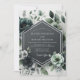 A dramatic yet elegant design features deep teal blooms interwoven with muted green foliage. This enchanting artwork evokes a sense of moody romance, perfect for an autumn or winter affair. The botanical elements create a sophisticated and natural aesthetic.