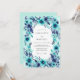 This watercolor design showcases a vibrant border of teal and navy blue anemones. Cool tones of aqua and indigo create a refreshing botanical atmosphere. Delicate leaf sprigs and buds surround the central area, offering a lush and artistic aesthetic for a seaside or seasonal event. The palette captures a serene yet bold mood.