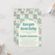 Invitación Teal Checkerboard Seashell Bow Baby Shower