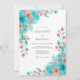 Invitación Teal Coral Botanical Romance Wedding