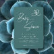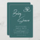 Invitación Teal Elegant Script Baby Shower Heart Footprints