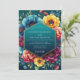 A dramatic, moody floral design bursts with vibrant blooms in deep teal, golden yellow, and rich magenta. This artwork evokes a sense of opulent romance and lush enchantment.