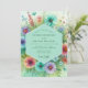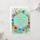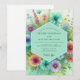 A vibrant meadow bursts with an array of blooms in soft teals, purples, and coral tones. Delicate watercolor petals create a whimsical and romantic atmosphere for your special day. This design evokes a sense of natural beauty and enchantment.