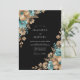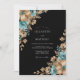 This design features a striking contrast of deep teal and antique gold blooms. Lush floral arrangements in aquamarine hues intertwine with richly toned golden foliage, creating an atmosphere of elegant sophistication. The artful composition evokes a vintage charm suitable for a memorable occasion.