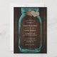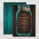 Invitación Teal Mason Jar Wood Monogram Burlap Hearts Wedding