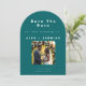 Anuncia tu hito del 2026 con la Foto con Arco Moderno para Guardar la Fecha, una pieza emblemática de la colección The Editorial Arch en Retro Remix. Este diseño combina perfectamente tu retrato de compromiso favorito con las líneas arquitectónicas audaces y el color principal del 2026: el Teal Transformador.
