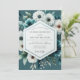 This design features a deep teal backdrop adorned with striking white anemones and cool-toned floral accents. The painterly style creates a moody and sophisticated aesthetic, perfect for a romantic winter event. Delicate green foliage and subtle berries add texture to the lush botanical arrangement. It evokes a sense of ethereal beauty and refined elegance.