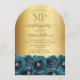 Invitación Teal Rose Floral Gold 50th Birthday Party