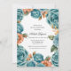 Invitación Teal Roses and Orange Floral Bachelorette Party
