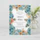 Invitación Teal Roses and Orange Floral Engagement Party