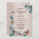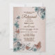 Invitación Teal Silver Floral Butterfly Tan Rehearsal Dinner