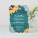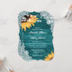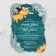 Invitación Teal Wood Lace String Lights Sunflower Wedding