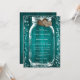 Invitación Teal Wood Mason Jar Rustic Fall Wedding
