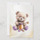 Añada un toque personal a su celebración de cumpleaños con estos artículos fiestas de diseño y memorables. El diseño presenta un oso de peluche con globos de colores sobre fondo morado.