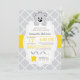 Este diseño presenta un patrón de curvado retro gris en el frente con un oso de peluche lindo. Sus invitados y el invitado especial de honor estarán encantados con esta adorable invitación. Personalice y edite toda la información de texto para que se ajuste a sus necesidades.