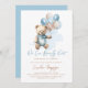 Invitación de moda para los niños de la ducha de bebé azul con adorable oso de peluche con globos pastel azules y marrones, redacción de "Es un niño" y azul pastel en el fondo. Elementos coincidentes disponibles.