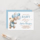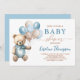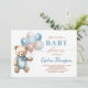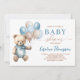 La invitación a la ducha de bebé es de diseño, con un bonito oso de peluche con globos pastel azules y marrones y color azul pastel. Elementos coincidentes disponibles.
