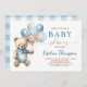 Invitación Teddy Bear Boy Blue Plaid Pastel Baby Shower