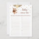 Compra esta tarjeta editable y disfruta de un juego de alta calidad Baby Name Race para tu evento! Globos marrones y dorados, Oso Teddy. ¡Actividades de Baby Shower!