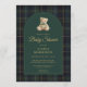 Invitación Teddy Bear Plaid Green Blue Tartan Baby Shower