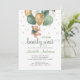 Acuarela Teddy Bear Sage Globos Verdes y Oro que podemos esperar a la invitación de Baby Shower. El diseño presenta un elegante diseño de texto de estilo moderno. Para realizar cambios avanzados, seleccione la opción "Hacer clic para más personalizares" en Personalizar esta plantilla.