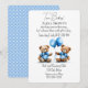 Los osos de peluche gemelos con globos azules y corbatas de arco para una ducha gemela de bebé invitan. Se puede cambiar todo el texto. Se puede eliminar el fondo del punto polka.