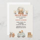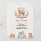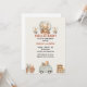 Plantilla de invitación a la ducha para bebés Teddy Bear, con un oso de peluche y un caballo adorables, y rayas marrones para que coincidan con el tema marrón neutro de género.