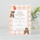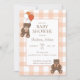 If you can "bearly" wait for the arrival of baby, customize this orange and white buffalo check (plaid), teddy bears, ribbon bows, and balloons baby shower invitation. The back of the card features the same gingham background.