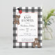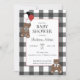 Invitación Teddy Bears Black White Buffalo Check Baby Shower