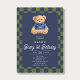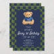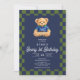 Invitación Teddy Beary 1st Birthday Checkboard Blue Green