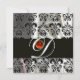 INVITACIÓN TELA DE DAMASCO DE SEDA NEGRA Y BLANCA CON MONOGRA
