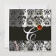 INVITACIÓN TELA DE DAMASCO DE SEDA PLATA NEGRA CON MONOGRAMA