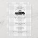 Invite a sus huéspedes en estilo con esta invitación retra rústica del fiesta del día de padre inspirado. Características del este diseño una camioneta pickup del negro del vintage en un fondo gris y blanco de la tela escocesa del búfalo. Sus detalles del fiesta pueden ser personalizados para adaptarse a sus necesidades. Diseñado por el ©Tim renombrado Coffey del artista del mundo.