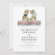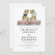 Si a usted y a su prometido les gustan los dinosaurios, aquí hay una gran oportunidad para difundir su pasión por los dinos con este divertido tema de los dinosaurios, la invitación a la boda con la novia y el novio de los dinosaurios parados en un colorido prado de flores silvestres de acuarela. Fácil de personalizar con los nombres de novios y novios, fecha de boda y todos los detalles. Divertidos ilustraciones de novios T-Rex con un guión moderno y caprichoso de tipografía. Obra original de la artista Catherine Sweetman