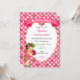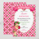 Invitación Tema de Fresa Bebé Niña Gingham Rosa Verde