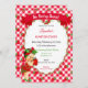 Invitación Tema de Fresa Niña Bebé Cuadros Rojo Verde