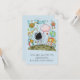 Tema de la fiesta de cumpleaños del niño o chica astronauta con astronauta, asteroides, rover de la luna, telescopio planeta, nave de cohetes fuera de la escena terrestre en la luna. Una alegre y colorida invitación al personalizado para un joven amante del espacio exterior y de la ciencia ficción.