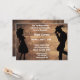 Invitación de recepción de vaquera y vaquero con siluetas de una pareja contra un fondo de madera. Excelente invitación para recepciones, fiestas de boda, barbacoas y más. Personalice con los detalles de su fiesta.