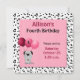 Invitación a la fiesta de cumpleaños de las niñas pequeñas a cumplir 4 años en papel rosa y dálmata.