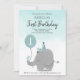 Invitación Tema del globo de elefante blanco azul cielo perso