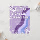 Una invitación groovy de primer cumpleaños con un tema retro, margaritas y un diseño de arcoiris morado.