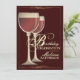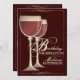 Una mirada antigua elegante se da a estos vidrios bonitos de vino rojo en esta invitación de la celebración del cumpleaños que sea apenas perfecta cuando el homenajeado es un amante del vino o el acontecimiento será celebrado en un lagar o un viñedo. El efecto a mano y coloreado de los vidrios añade a diseñar elegante con apenas una indirecta del encanto rústico.