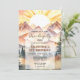 Boho y rústico diseño cristiano-neutro de género de primer cumpleaños basado en el salmo 139 "Fearfully and Wonderfully Made" con un paisaje de acuarela con montañas, abetos y un sol naciente.