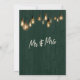 Esta tarjeta de recepción de boda rústica moderna presenta una pared de madera oscura y rica con bombillas Edison super