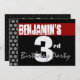 Invitación Tercer cumpleaños moderno para él rojo blanco negr