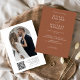 Esta invitación a la boda elegante y clásica de Terracota es la manera perfecta de anunciar su día especial con un toque minimalista y contemporáneo. La elegante tipografía de escritura añade un toque de sofisticación al diseño, haciéndolo perfecto para cualquier estilo de boda. El cálido color de la terracota es ideal para una boda en otoño, añadiendo un toque de calidez y coqueto a su día especial. Reemplace la foto de atrás con la suya propia por un toque verdaderamente personal que hará de esta bella invitación un honor para los años venideros. Con un código QR incluido en la invitación, sus huéspedes pueden acceder fácilmente a todos los detalles e información importantes sobre su boda. Esta invitación no sólo es bonita, sino también práctica y conveniente tanto para ti como para tus invitados. El diseño elegante y elegante de esta invitación impresionará a sus huéspedes y marcará el tono de un boda inolvidable. Ya sea que esté planeando una reunión íntima o una gran celebración formal, esta invitación a la boda dejará una impresión duradera.