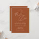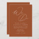 Elegantes invitaciones nupciales con "We Do" en la parte superior del diseño en un moderno guión de caligrafía blanca con un fondo de terracota. Personalice las invitaciones de boda clásicas de terracota con sus nombres, fecha de boda, ubicación de boda, etc. La invitación a la boda We Do es perfecta para bodas de verano, otoño, invierno y primavera. Diseñado para coordinar con nuestra colección de bodas Modern Elegance.