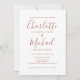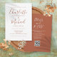 Con nombres de estilo característico, esta elegante invitación a la boda de terracota se puede personalizar con toda la información especial del día de la boda en la parte delantera, los detalles del sitio web de su boda y el código QR al revés. Diseñado por Thisisnotme©